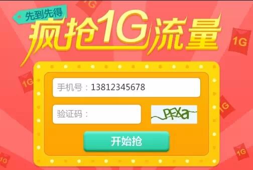 第三步:12点一到,立刻点击“进入疯抢”。快速输入手机号码和图形验证码,点击“开始抢”。100个1G流量,先到先得。这一环节就拼谁手快,平时多练习,提高手指的灵活性吧!
