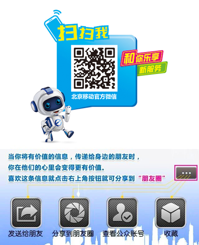 步:分享此微信到朋友圈,点击下方“阅读原文”并下载安装“北京移动”客户端。