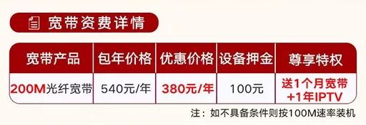 活动期间,枣庄地区200M光纤宽带价格如下: